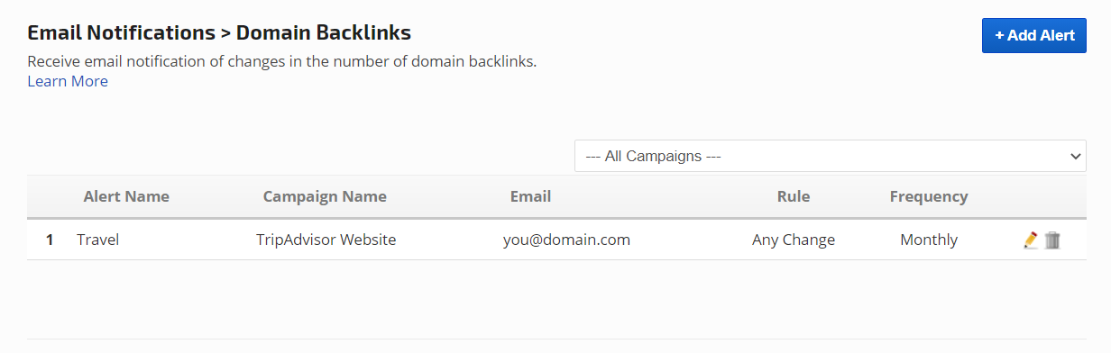 Domain Backlinks Email Alerts