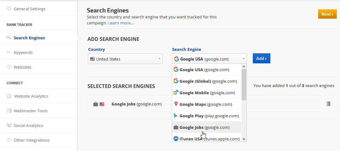 Google Jobs tracking is a premium service available as an add-on to Enterprise Rank Tracking packages or via the Google Jobs Rank API.