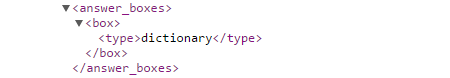 If a dictionary definition answer box displays in the search results for a keyword you're tracking in Rank Ranger, the API will return a box-type dictionary.