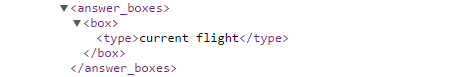 If an answer box with current flight information displays in the SERPs for your keyword, the API returns the "current flight" type.