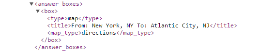 API Results for SERP Answer Box of Map Location