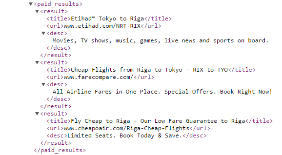 API response if product listing ads exists in search results