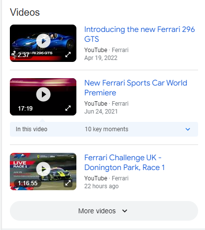 SERP features Carousel song list