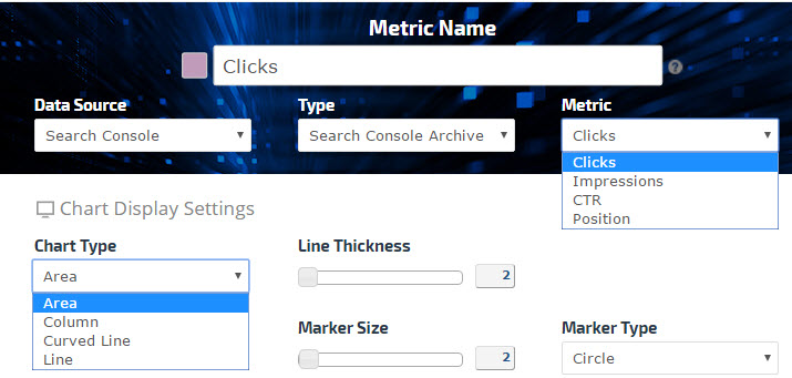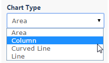 Depending upon the selected metric, you may choose from Line, Curved Line, Column, or Area chart types.