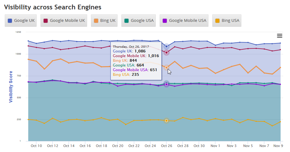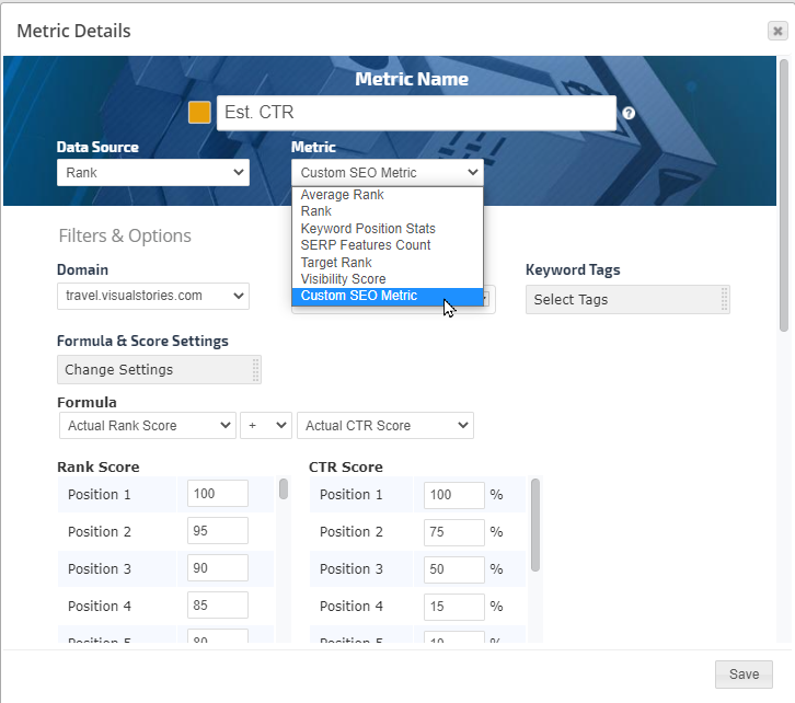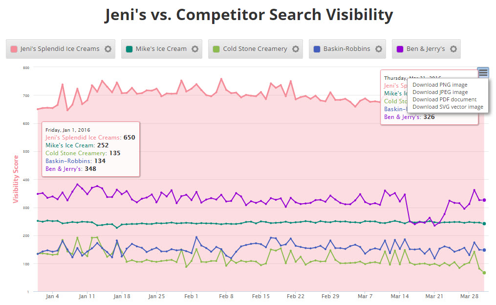 The Insight Graph gives you the freedom to create graphs with blended metrics, date ranges, chart types, etc. choosing from our rank data and a variety of third-party integrations.