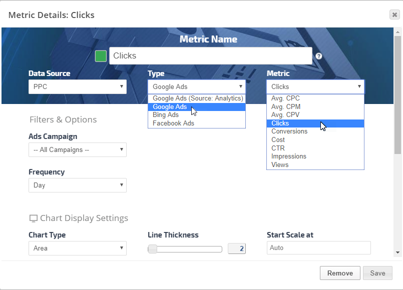 • Custom View Metric: this allows data from multiple campaigns to be aggregated (learn more...)