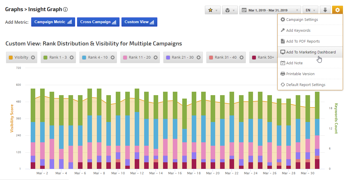 To add an Insight Graph to an existing white label report simply hover over the gear icon and click Add to PDF Reports or Add to Web Dashboard and follow the onscreen instructions.