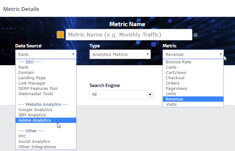 Authorizing third-party integrations expands your options from rank and link data to a wide variety of metrics that you can include in your Insight Graphs and Single Metric Widgets.