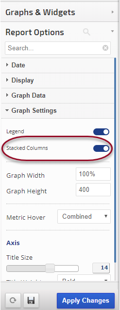 • Show or Hide Stacked Columns: graph metrics must be Column chart type and created before selecting this option