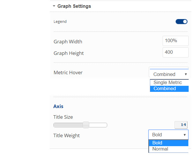 • Select Combined or Single Metric Hover; Combined displays data of all graph metrics for the point on the graph that you hover over, and Single displays only hover point data for the single metric.