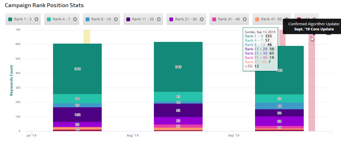 • Show or Hide the Algorithm Updates recorded by our Rank Risk Index