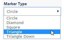 Select from Circle, Diamond, Square, Triangle, or Triangle pointing down for data point marker type.
