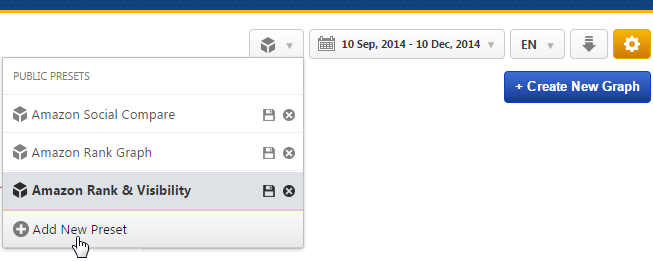 When you're finished creating a graph, save a personalized version and then create additional versions using different metrics, variables, and styles of that graph for the same campaign using our Preset feature.   Export your creation to a variety of image types or PDF, or add it directly to an existing Marketing Dashboard or scheduled White Label PDF Report.