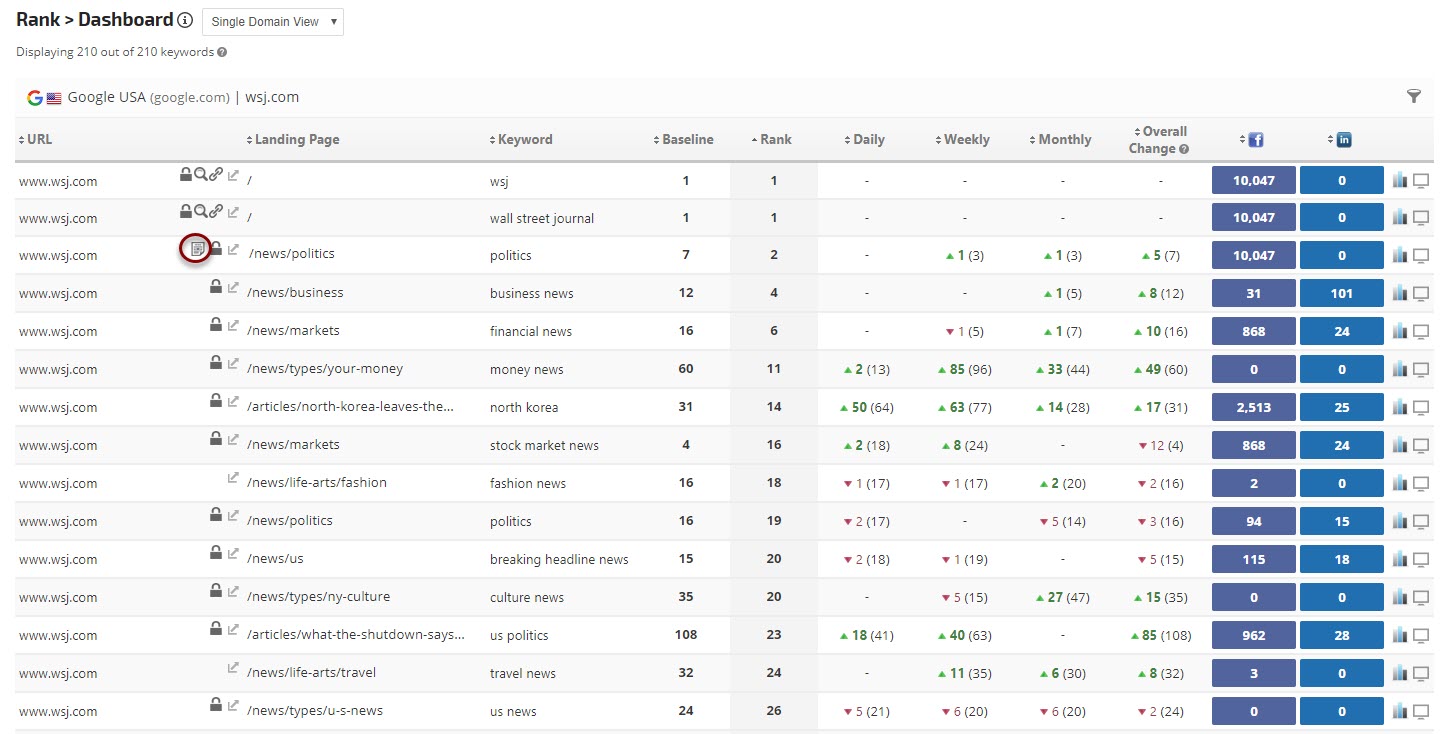 When set to include and campaign keywords result in Top Stories in Google Search, a news icon SERP News icon will be displayed in the Dashboard report for that keyword.  Learn more about how rank is counted when this option is selected.