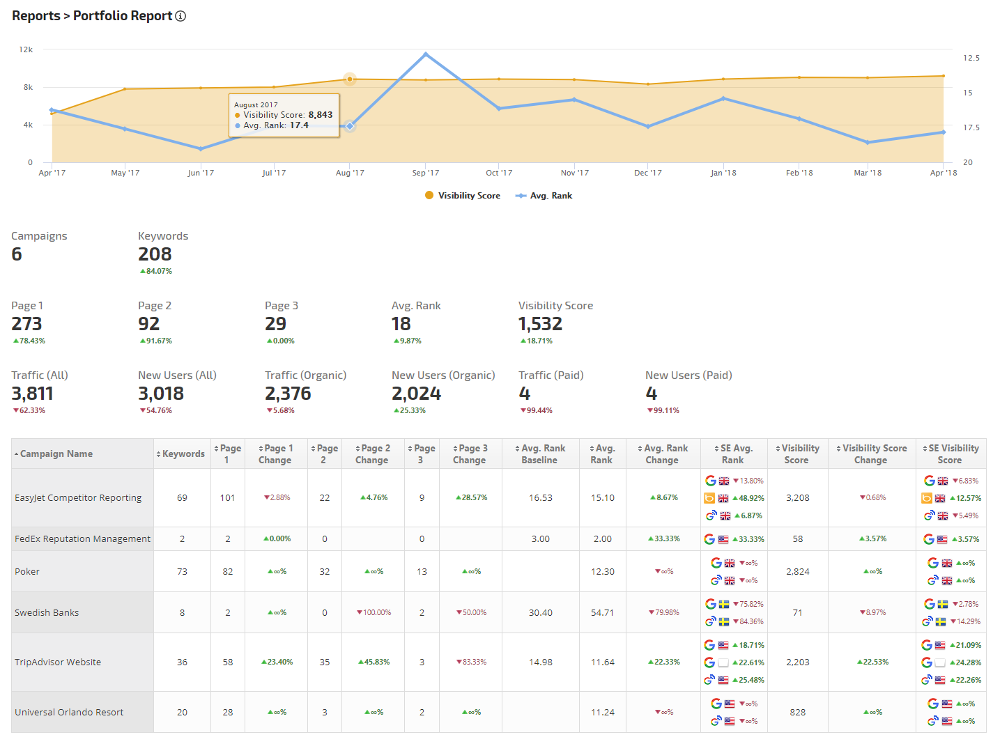 Campaigns Average Rank & Visibility Score Portfolio Report