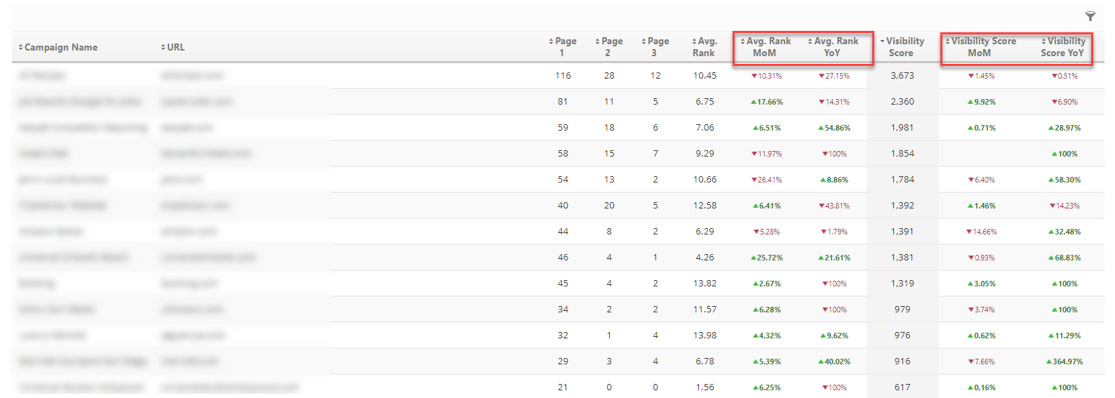 Campaign Portfolio Total Page Rankings Report
