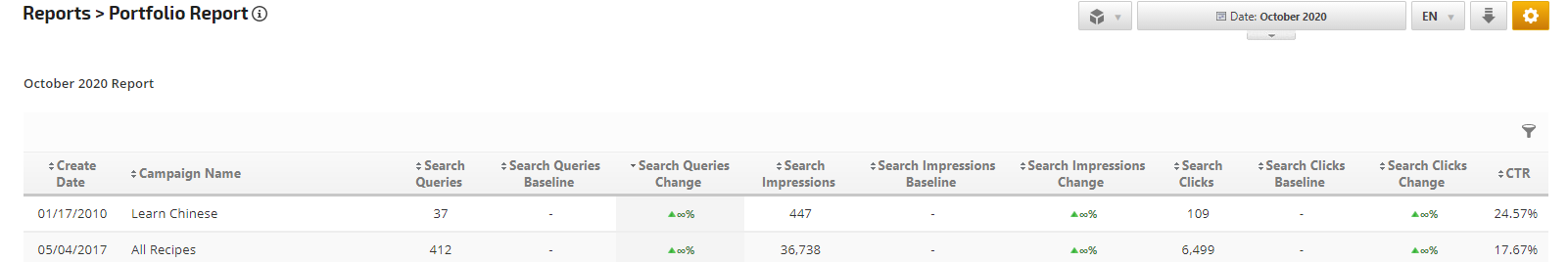 If you have baseline data from a previous time period, Portfolio Report Baseline values can be manually changed in Campaign Settings > Portfolio Baseline.