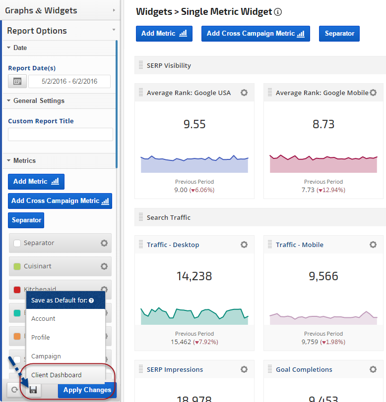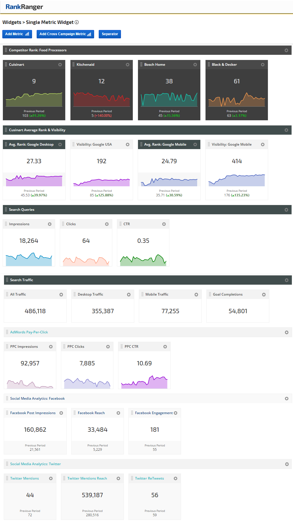 Authorizing third-party integrations expands your options from rank and link data to a wide variety of metrics that you can include in your Insight Graphs and Single Metric Widgets.
