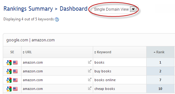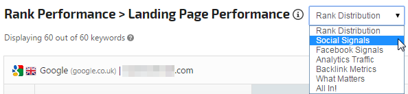 - Rank Tracker Dashboard provides you with a complete overview of your primary domain, as well as your competitor URLs, and is rich with options including Rank Change filters, Keyword Metrics, Domain Metrics, Landing Page Metrics including social signals, and more