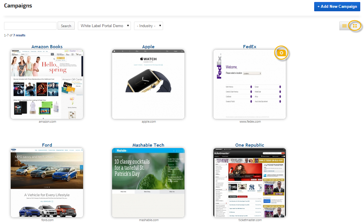 View Campaigns in Table or Website Thumbnail Grid