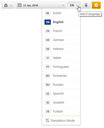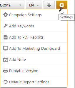 Select the desired report language. At this time you can view your SEO rank tracking reports in English, Dutch, French, German, Hebrew, Italian, Portuguese, Russian and Spanish. Through this menu, you also have the option to switch to