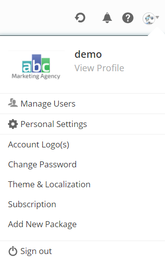 Hover over the person icon and select an option or click the Settings icon to access the following settings and information: