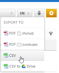 The Export tool allows you to download your report data in PDF (portrait or landscape), CSV, or Excel formats.