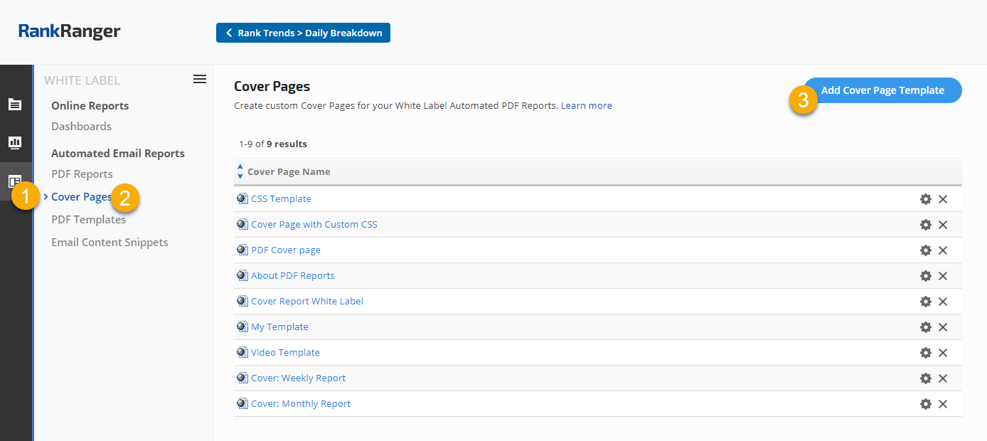 Rank Ranger's Cover Page templates make it easy to create a personalized cover page for the automated White Label PDF reports being sent to your customers. Create it once, and apply to as many reports as you'd like.