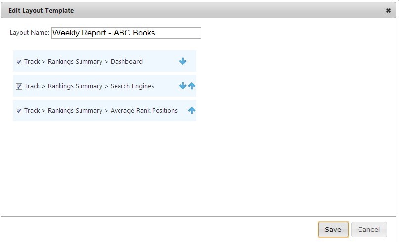 Rank Ranger displays the Report Layout preview; from this view you can do any of the following: