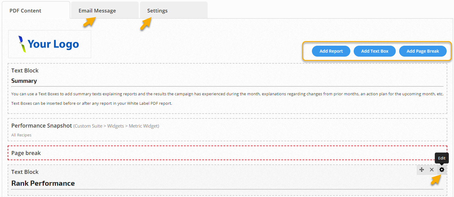 If you're creating your first White Label PDF report or want to create a new report from scratch, please refer to the Automated White Label PDF Report documentation.